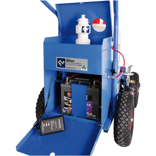 The V4 Liquid Marker produces sharper, brighter, lines and includes variable line width and position mechanism. Line width varies from 50mm to 100mm. The Quick Mix system allows you to mix your liquid in the removable container that holds 30 litres of linemarking liquid. The Fast Clean system makes cleaning quick and easy, simply connect your hose and your linemarker is cleared in seconds! Features a battery and charger, a nonclogging super heavy duty pump and a handy in-built utilities box for storing your accessories! It is recommended that you use Fountain Liquid (42-530, 42-539 or 42-545) products with this marker.