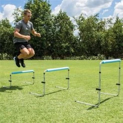 The HART Bounce Back Hurdles are designed to bounce back when knocked, reducing the need to reset hurdles after every turn or race. Height adjustable, they are great for athletics events and training. The lightweight tubular aluminium construction allows them to fold flat for easy storage.