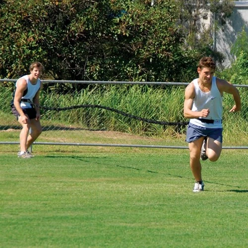 The HART Catapult Trainer is great for athletes needing to improve speed, strength and indurance. The back runner is pulled faster so they are forced to increase stride rate and length. The rate of the overspeed is easily controlled by the stretch placed on the tubing.