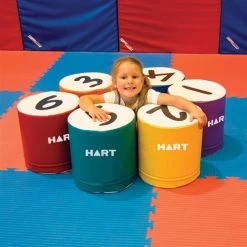 The HART Cylinder Number Set is perfect for numeracy games but also building activities and play. They can be used for expanding math skills but also physical and congnitive development. A great colourful addition to any play space, they can also be utilised as seats for young children.