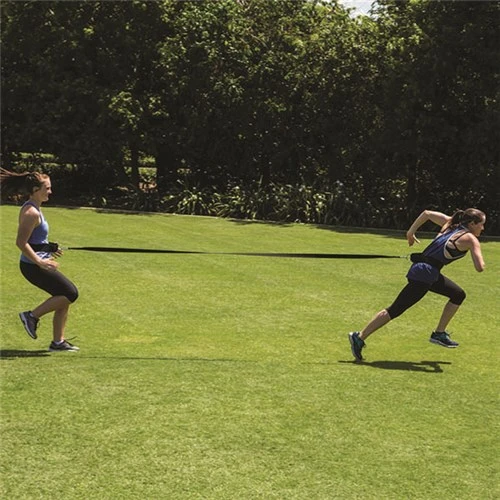 The HART Dual Resistance Trainer is excellent for sprint and agility training. The trainer can be used forward or backward running and lateral movements, as one athlete runs the other provides resistance