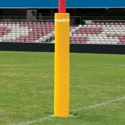 The HART Round Rugby Post Pad are a set of 4 pads made using high quality, impact absorbing foam and tough tear resistant vinyl. The pads are freestanding and split vertically with velcro the full length of the pad for a secure fit and easy attachment and removal of the pads from the post.