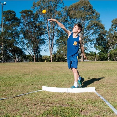 The HART Sector Tape is ideal for easy, no fuss, temporary field marking for discus, shot put and javelin events. There is no need to get out your measuring wheel with eyelets on the tape every ten meters.
