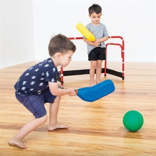 Modified hockey for preschool and lower primary. Paddle bats are 29cm x 10cm with durable foam covered heads. Ball colour may vary. Set includes: