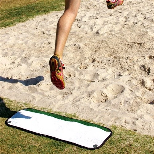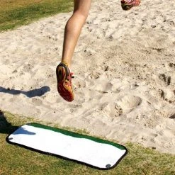 The HART Two Tone Long Jump Strip is an excellent training coaching aid for the introduction to long jump. Suited to lower primary aged children, it is perfect for use at school athletics carnivals or junior athletics club events and training. Made from weather-resistant, UV stabilised synthetic grass and edge-bound to prevent fraying. Each mat has four eyelets for securing into position using HART Anchoring Pegs (not included).Â